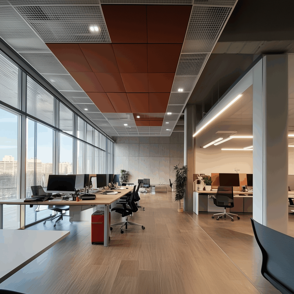 - Common areas: Acoustic stretch ceilings, durable collective furniture (lobbies, gardens, reception zones)
