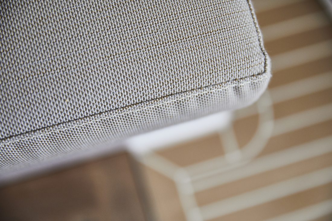 A high-performance fabric with a heathered look for contemporary outdoor furniture